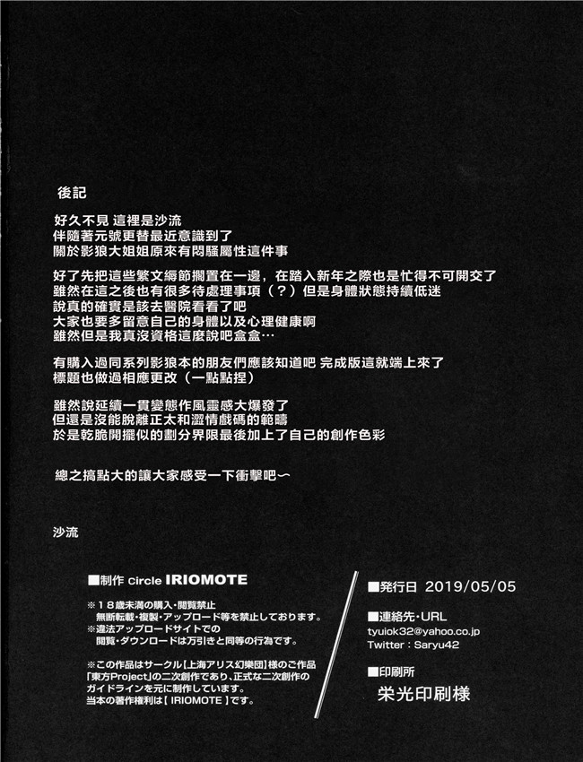 (例大祭16) [IRIOMOTE (沙流)] 影狼お姉さんの発情幼育期。 (東方Project) [明稿昨拖漢化組](14)